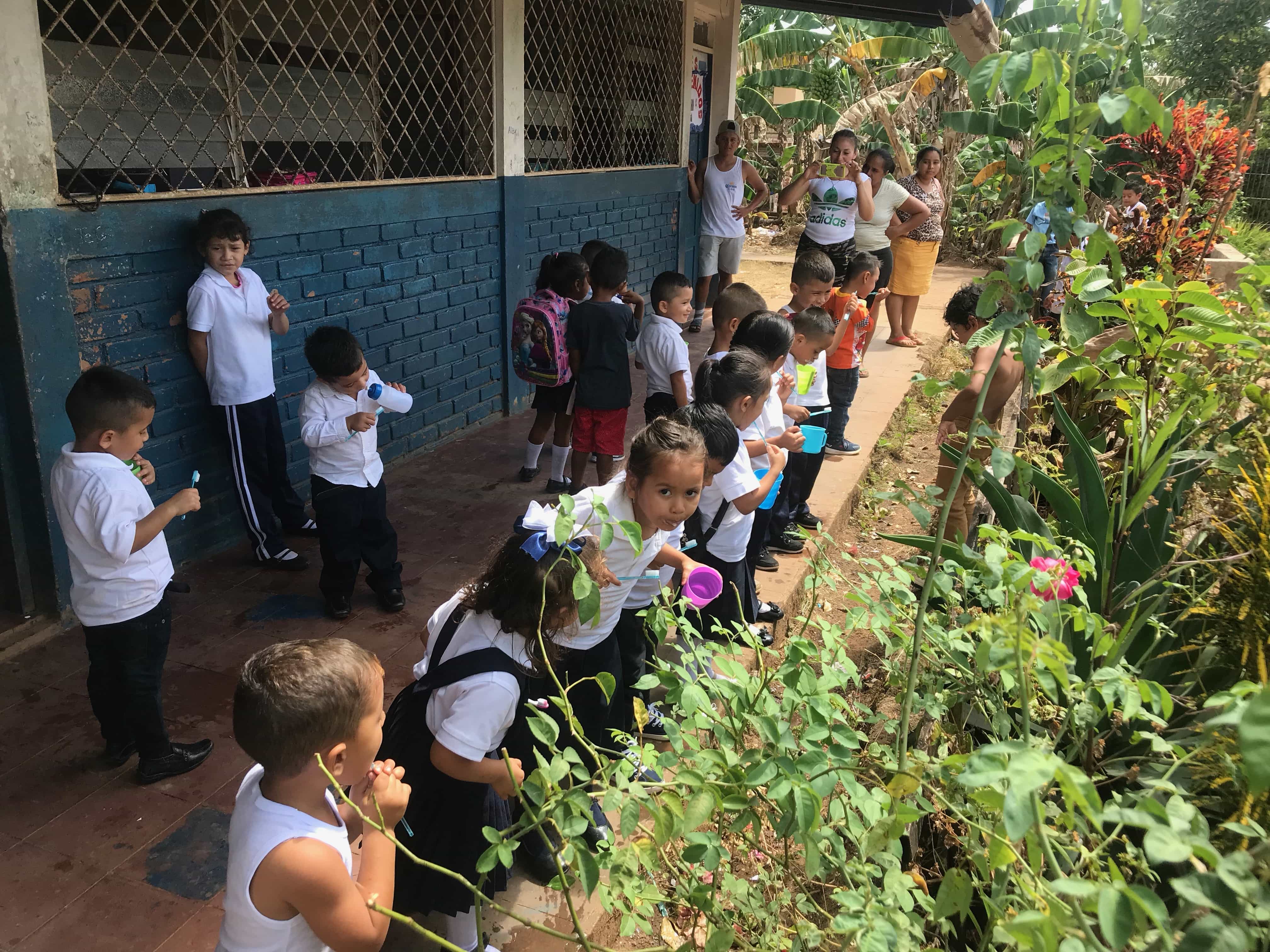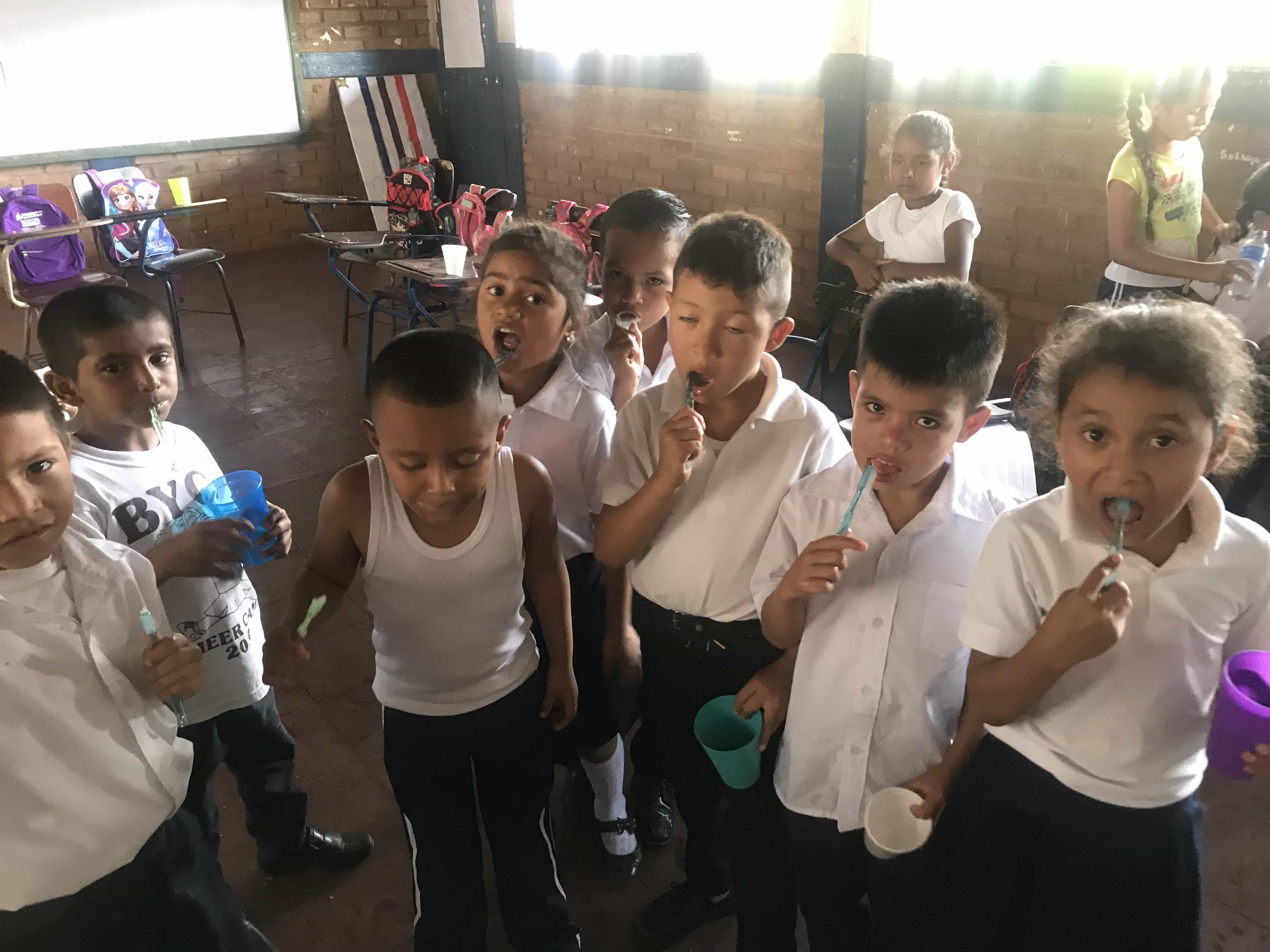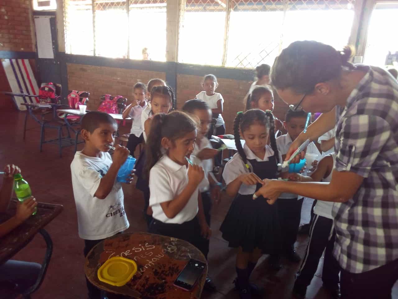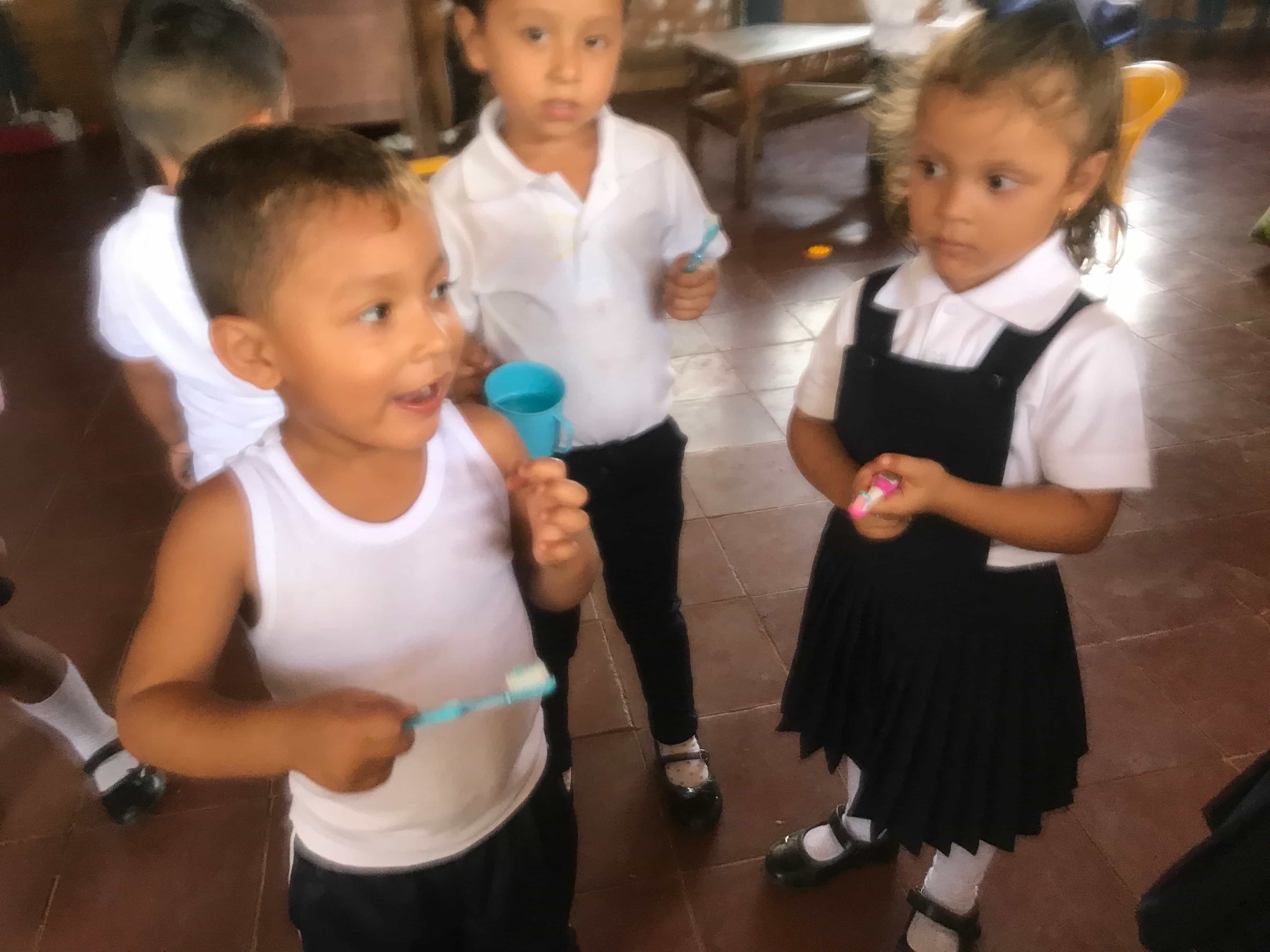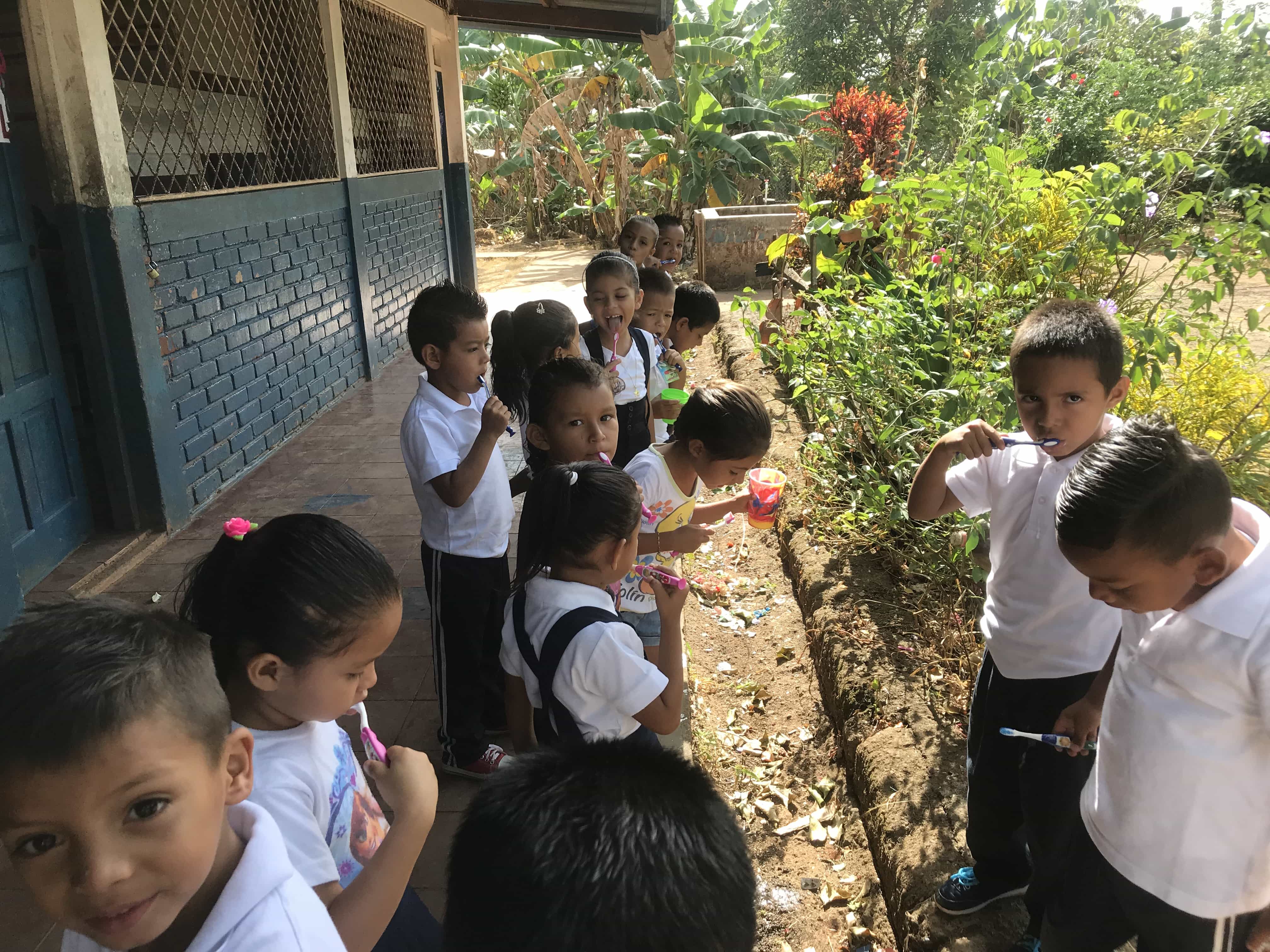Vor ein paar Tagen ging die Spendenaktion aus dem letzten Jahr für die Schüler in meinem Heimatdorf in Nicaragua endlich in die nächste Runde. Diese hat nämlich nicht nur Geldspenden eingebracht, die wir in Ventilatoren und Lehrmaterial investiert haben (mehr zu Anschaffung und Übergabe hier). Dank der Unterstützung der Zahnarztpraxis Dr. Saupe und Dr. Schwarz konnte ich mit etwa 100 Kindern in der Schule von „La Esperanza 1“ üben, wie man sich richtig die Zähne putzt.
